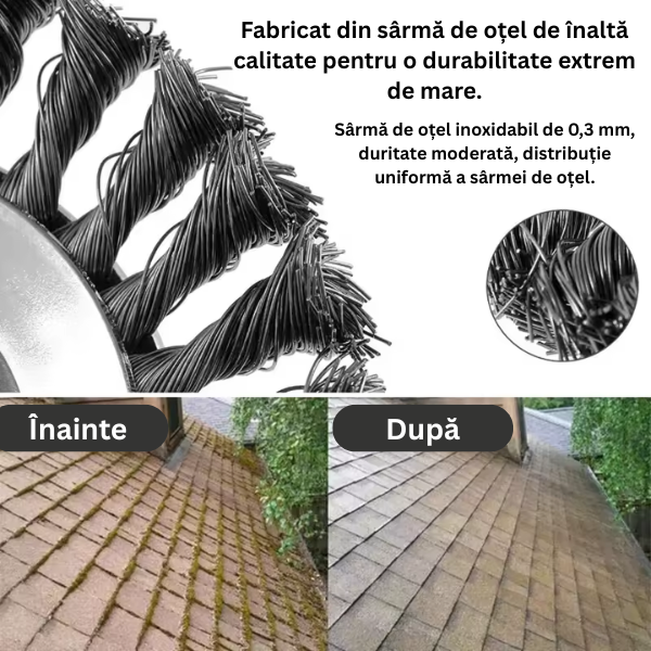 „Am testat mai multe tipuri de discuri, dar acesta cu perie de sârmă e cel mai eficient. Curăță inclusiv mușchiul de pe pietre, unde alte unelte nu ajungeau.”
