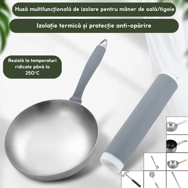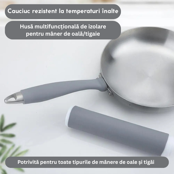 Spune adio arsurilor! Husa din silicon termorezistent suportă până la230°C, păstrând mânerul rece chiar și atunci când gătești la foc mare.