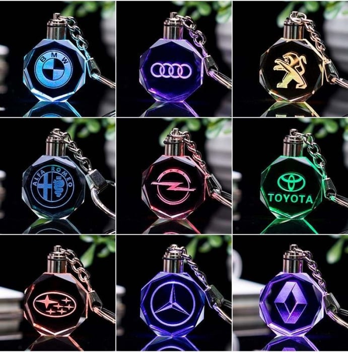 Fiecare breloc este realizat din cristal de calitate superioară, cu sigla auto gravată în interior prin tehnologie 3D laser.