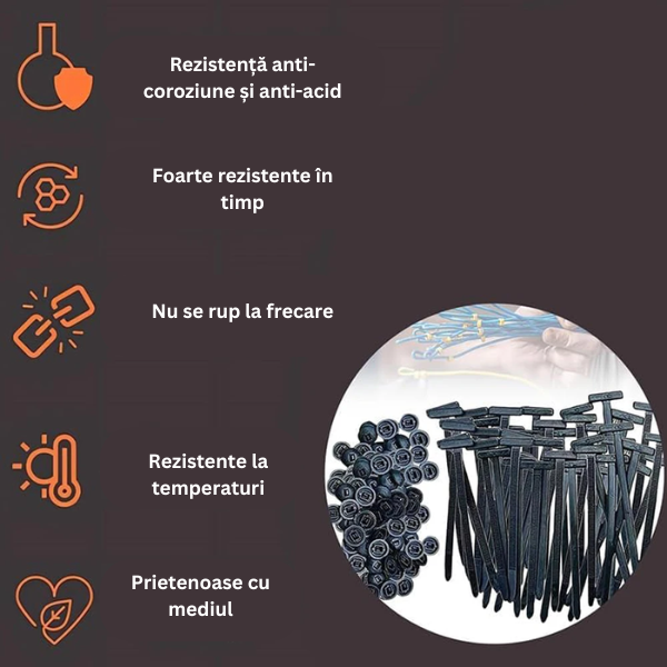 „Le-am luat pentru organizarea cablurilor în garaj și s-au dovedit excelente. Țin bine, nu alunecă și sunt rezistente la soare și căldură. Recomand cu încredere.”