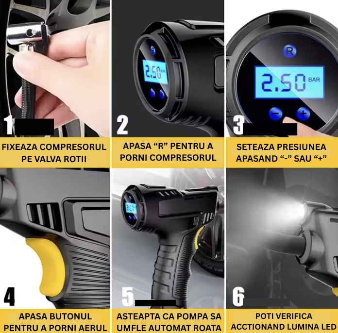 „Calitate bună, manometrul arată corect, iar designul este foarte practic. Foarte mulțumit de achiziție!”