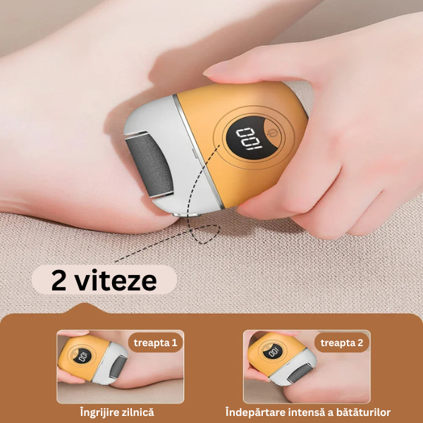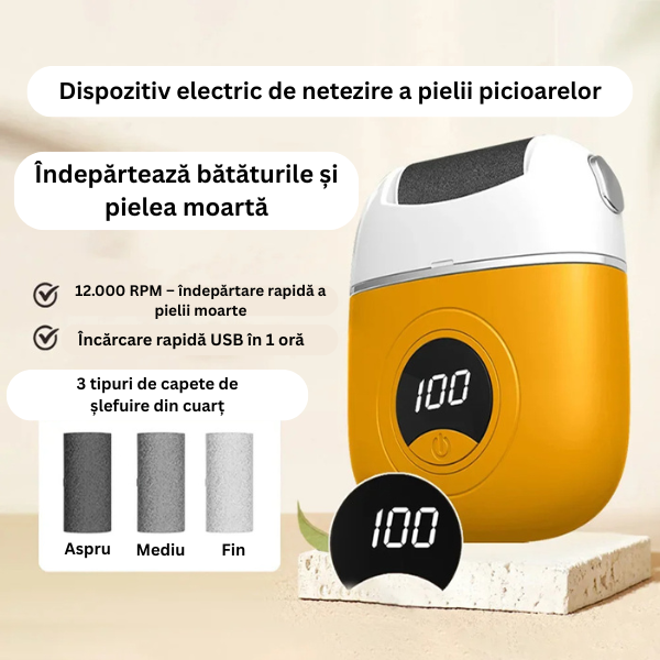 Aparatul electric pentru îngrijirea picioarelor îndepărtează eficient bătăturile și pielea moartă, oferindu-ți rezultate de calitate profesională chiar la tine acasă.