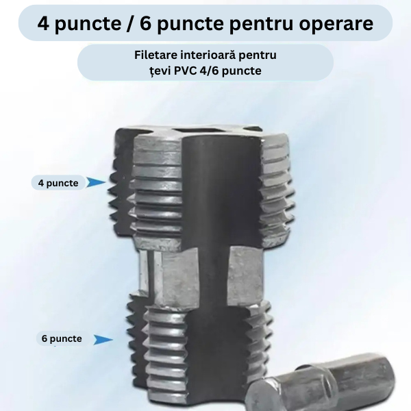 Acest filetator de găuri pentru țevi PVC este instrumentul ideal pentru orice proiect de instalații, fie că ești instalator profesionist sau pasionat de reparații DIY.