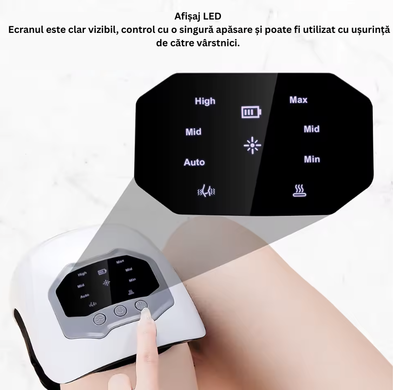 Dispozitiv inteligent de masaj pentru genunchi cu funcție termică și control tactil