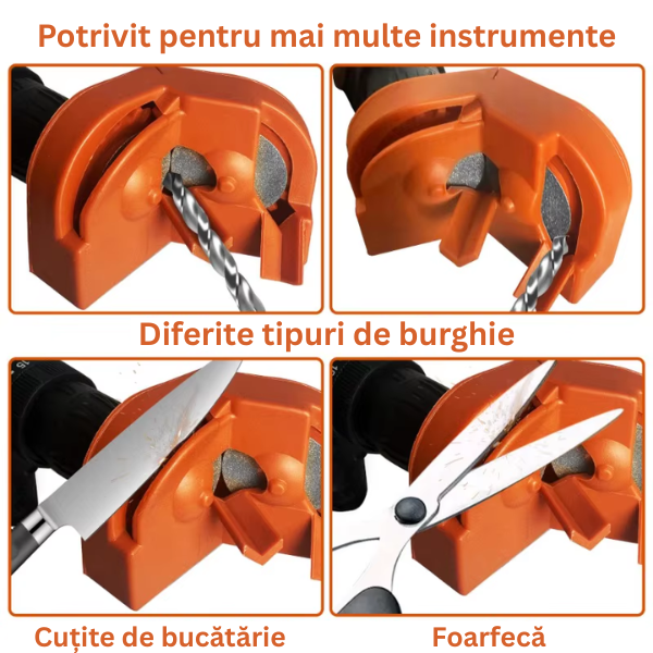 Acest ascuțitor nu este destinat doar burghielor, ci poate fi utilizat cu succes și pentru ascuțirea cuțitelor de bucătărie, foarfecelor, cutterelor și altor unelte de tăiere.