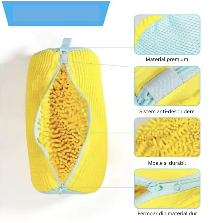 Interiorul cu fibre pufoase protejează încălțămintea împotriva zgârieturilor, deformării sau deteriorării în timpul spălării, păstrând forma și aspectul original al pantofilor sport sau casual.