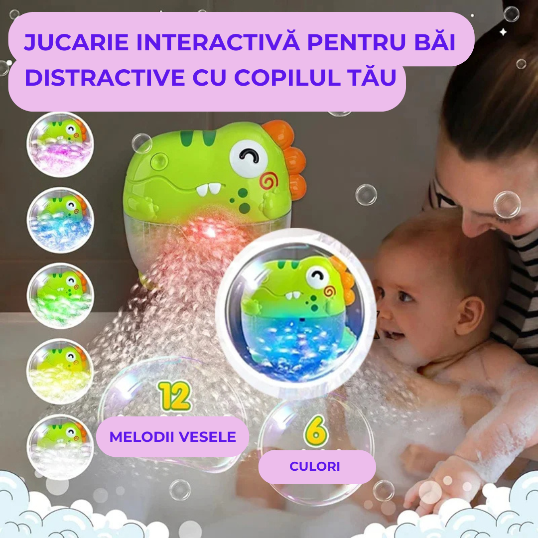 Jucăria luminează colorat în timpul funcționării, oferind un spectacol vizual fascinant ce transformă baia într-o aventură magică.