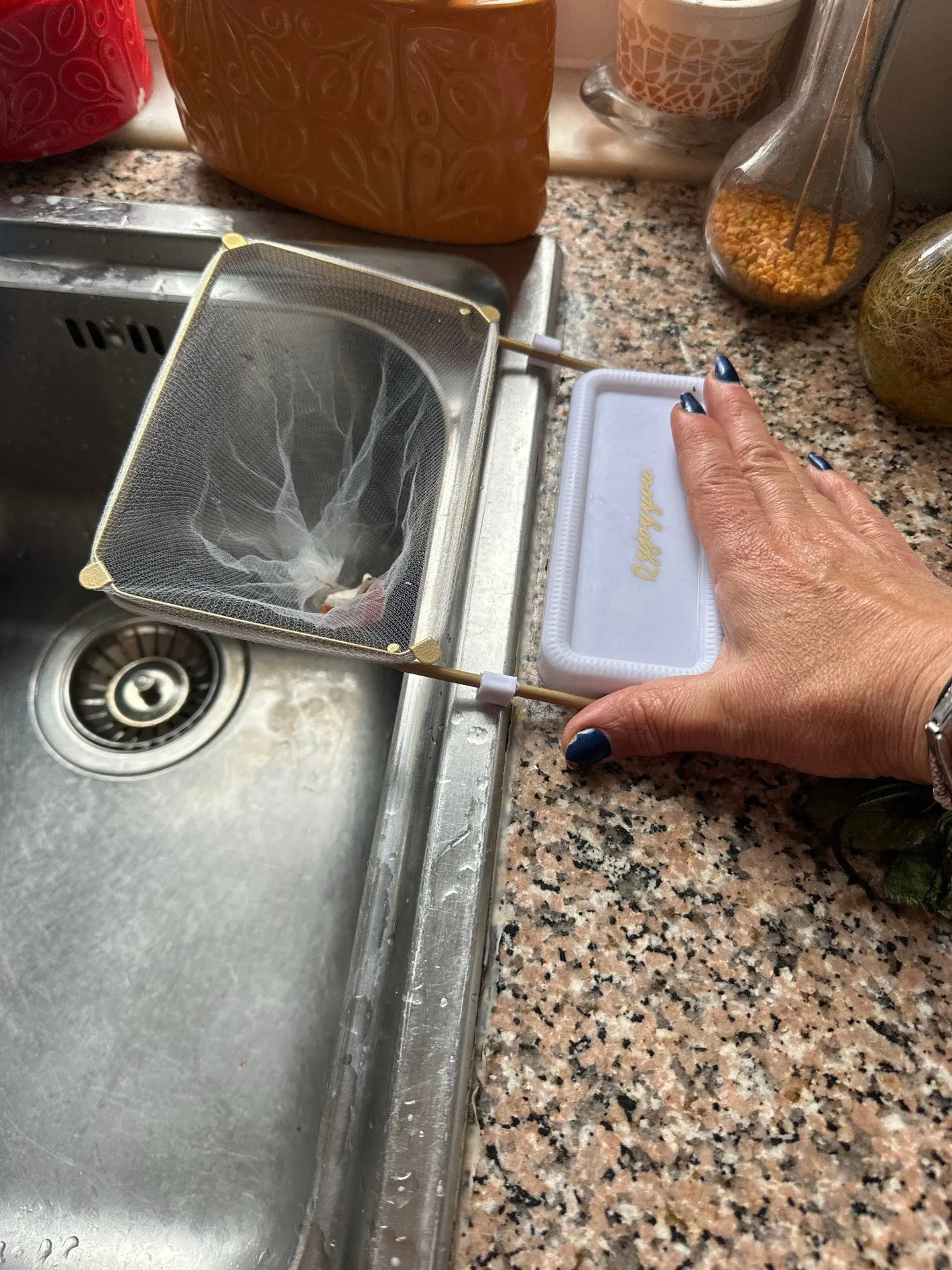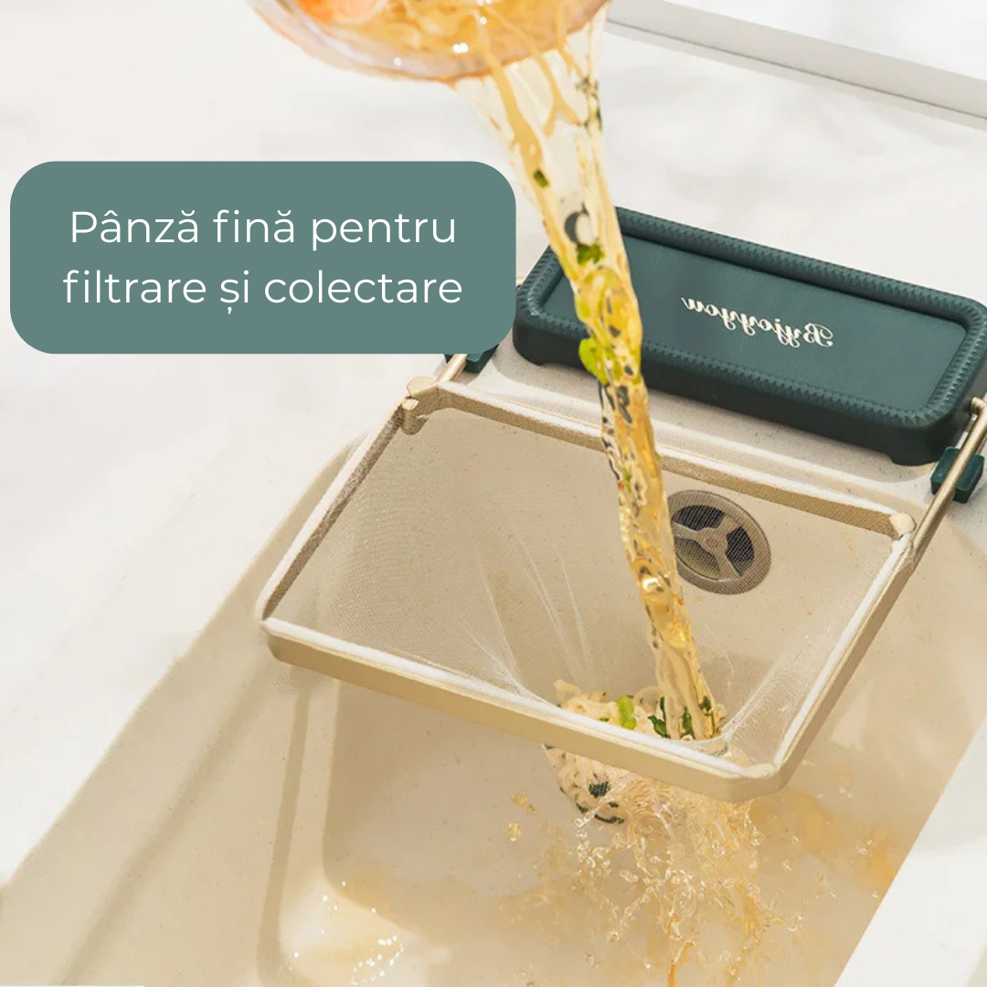 Sacii de unică folosință din plasă fină rețin chiar și cele mai mici resturi alimentare, prevenind înfundarea scurgerii și facilitând curățarea chiuvetei.