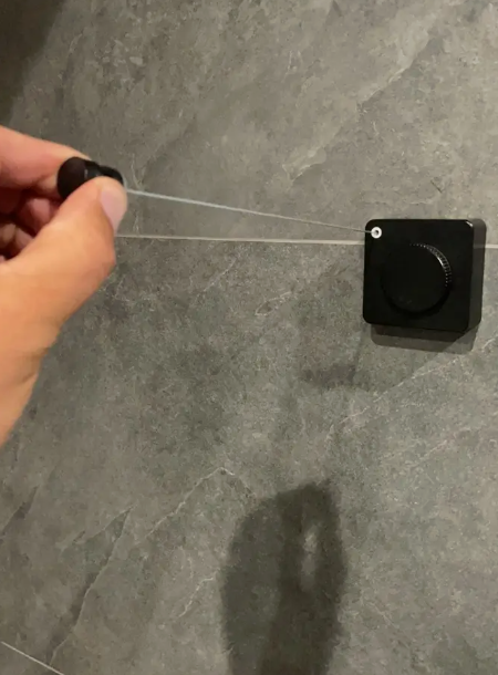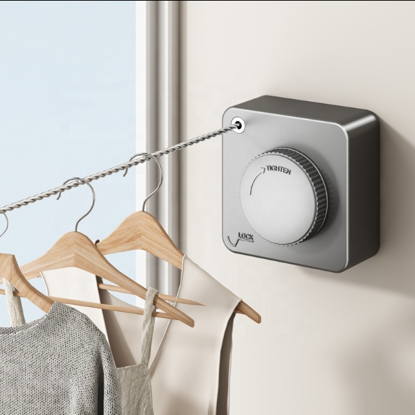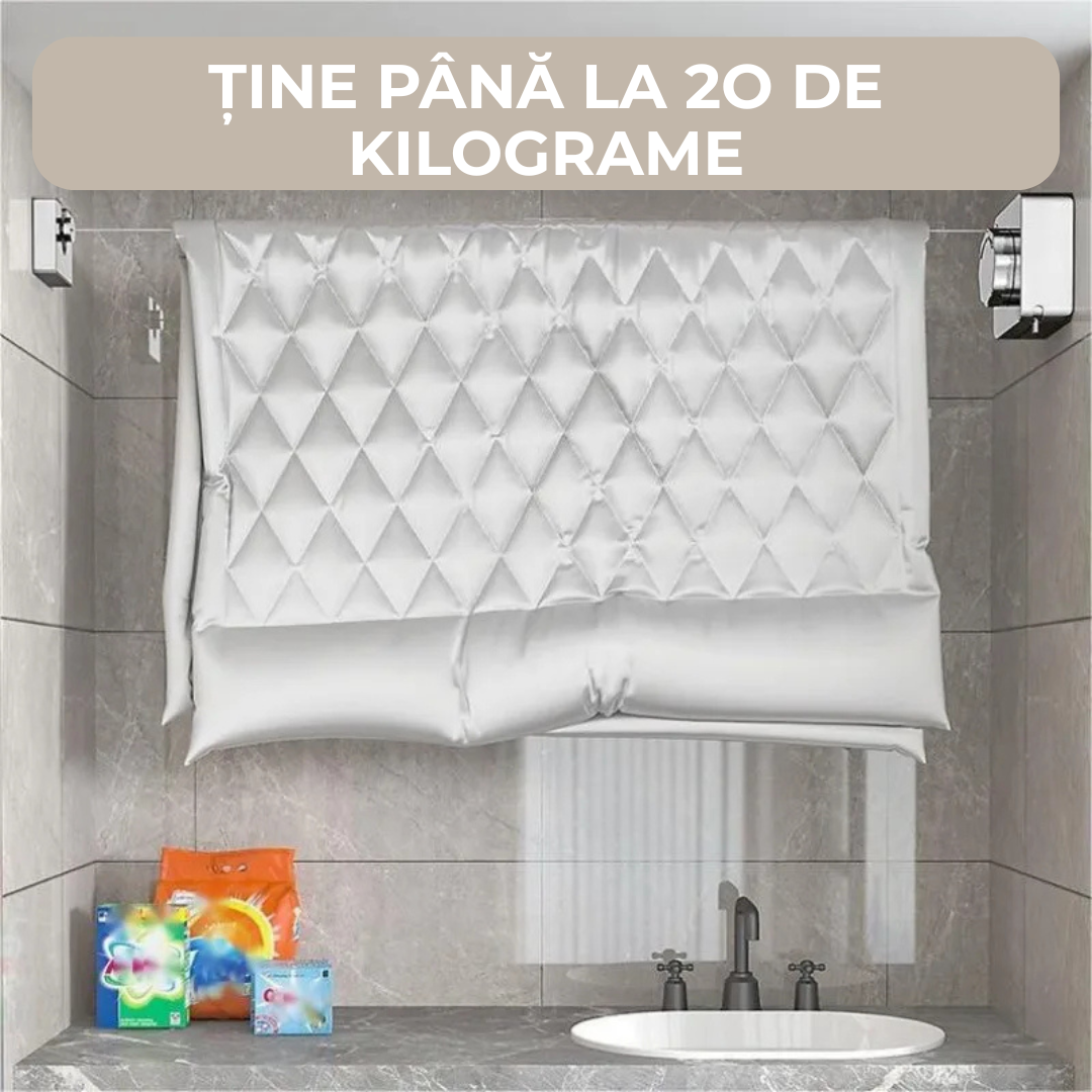 Când nu este utilizată, linia de uscat se pliază discret pe perete, economisind spațiu și menținând aspectul curat al încăperii.