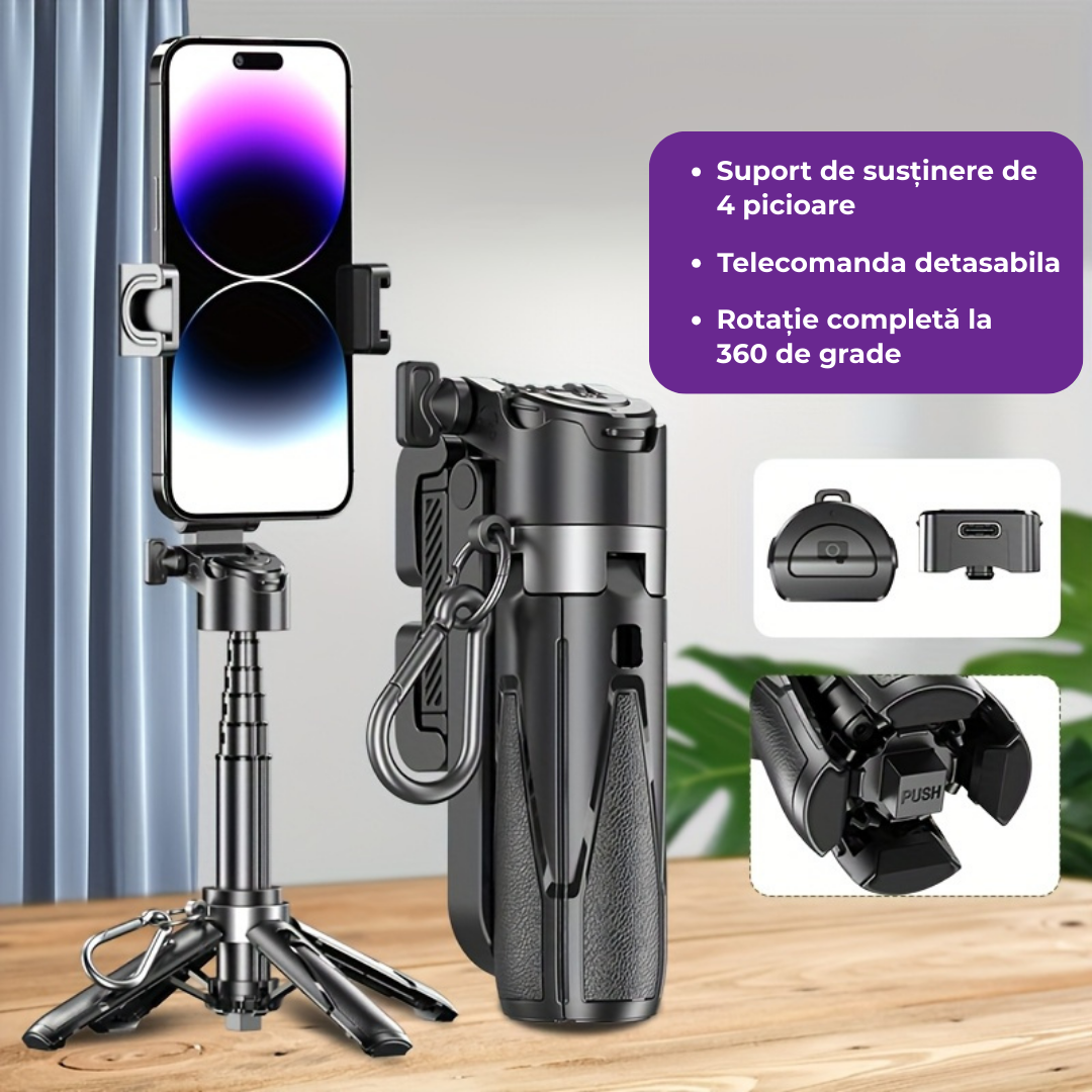 „Super compact și rezistent! Îl iau cu mine peste tot, încape în buzunar și are un tripod foarte stabil.”