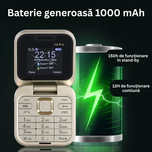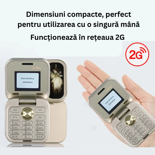 Cu un design inteligent și dimensiuni reduse, telefonul Flip i16 Pro încape ușor în buzunar și este mereu gata să te însoțească oriunde ai nevoie. Ideal pentru cei care apreciază simplitatea și portabilitatea.